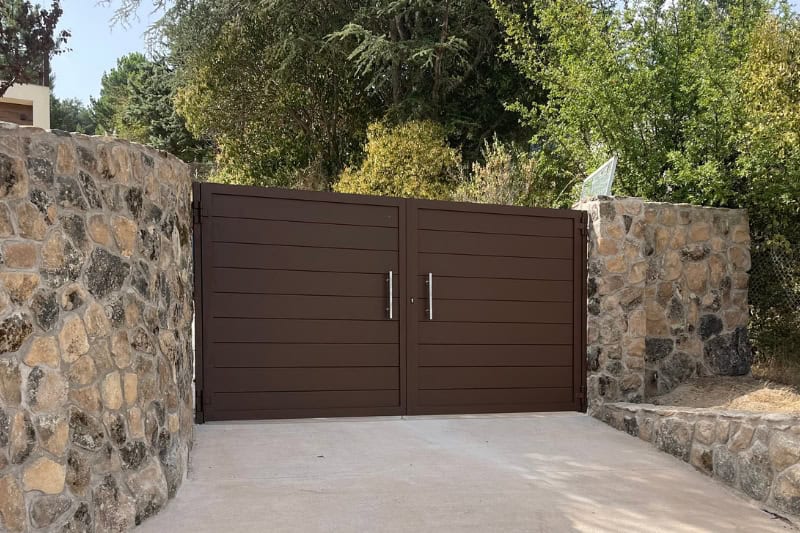 Puertas Premium de aluminio soldado para acceso peatonal y de vehículos en Collado Mediano